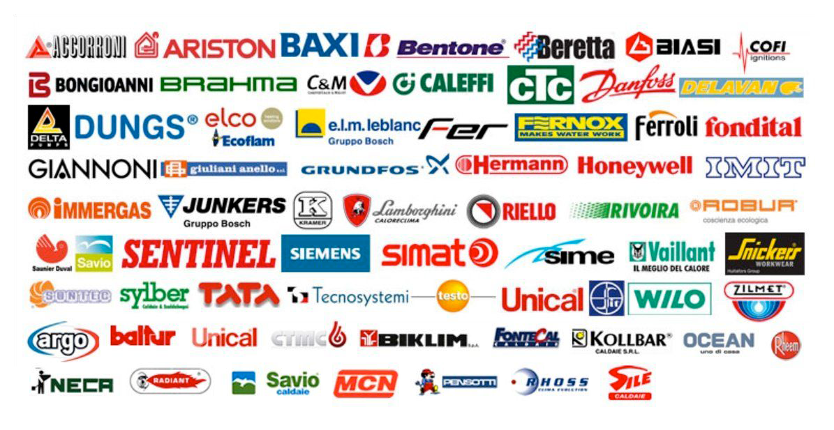 • Argo • Ariston • Baxi • Cosmogas • Ferroli • Hermann • Immergas • Riello • Rinnai • Saunier Duval • Siemens • Sime • Sylber • Junkers • Vaillant • Viessmann • e molti altri…